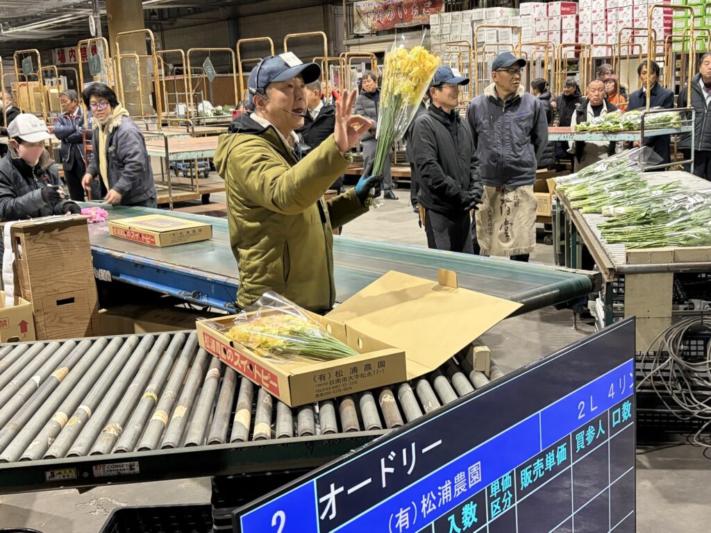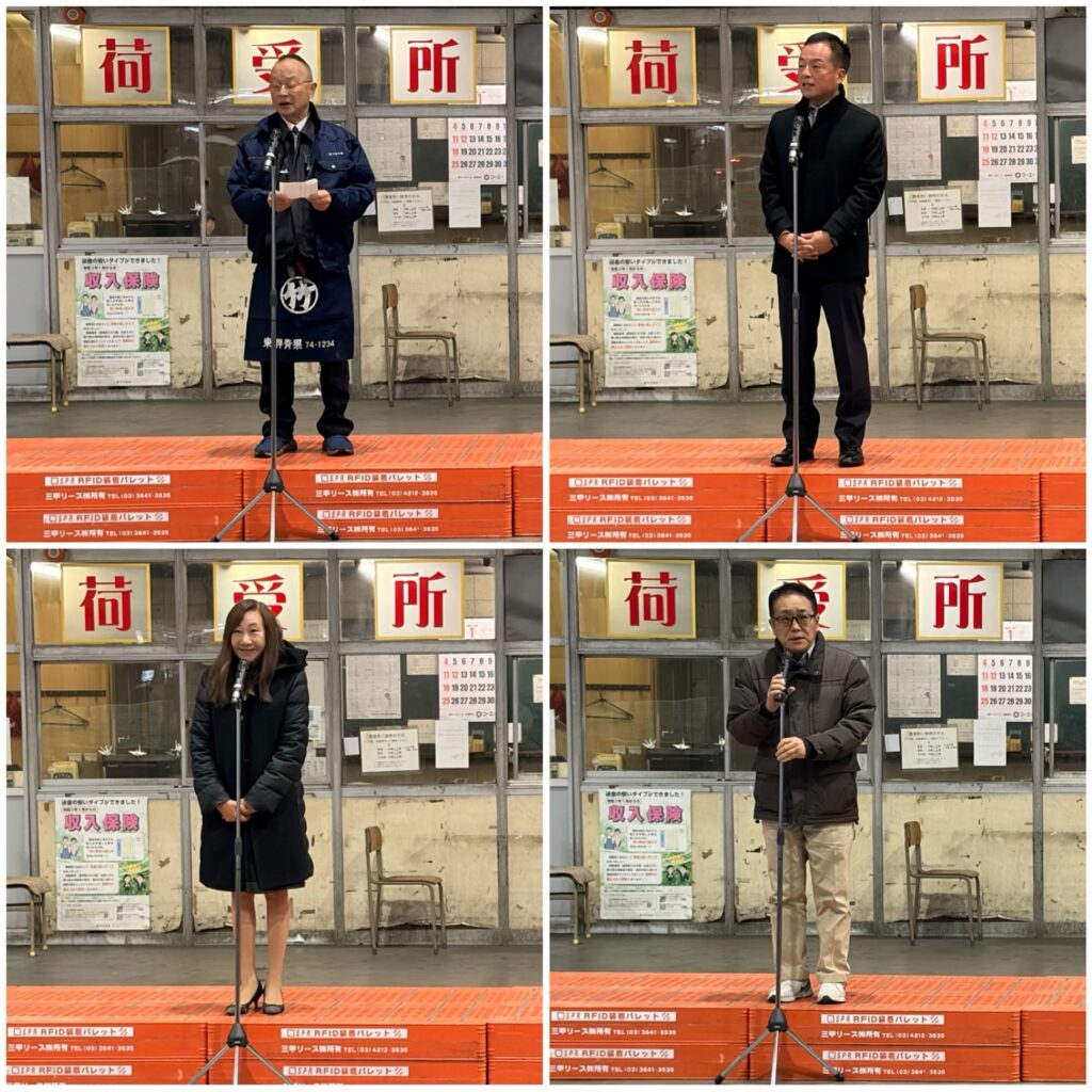 午前5時半より下関地方卸売市場で野菜、生花の初市事業が開催され、経済委員会副委員長として出席しました。