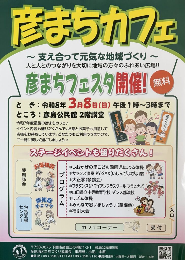 彦島公民館にて、彦まちフェスタが開催され参加しました。250名近い観衆で各種イベントは大変盛り上がりました!